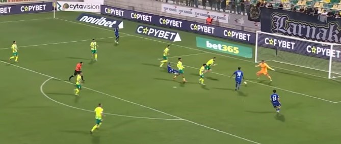Οι Λαρνακείς είχαν τον έλεγχο του αγώνα από το πρώτο μέχρι το τελευταίο λεπτό, δημιουργώντας πολλές ευκαιρίες μπροστά στην αντίπαλη εστία. Ωστόσο, βρήκαν απέναντί τους έναν εξαιρετικό Κόστιτς, που με καθοριστικές αποκρούσεις κράτησε το μηδέν, ενώ και το δοκάρι στο 20ό λεπτό —μετά από κεφαλιά του Ανγκιέλσκι— στάθηκε εμπόδιο στο προβάδισμα.