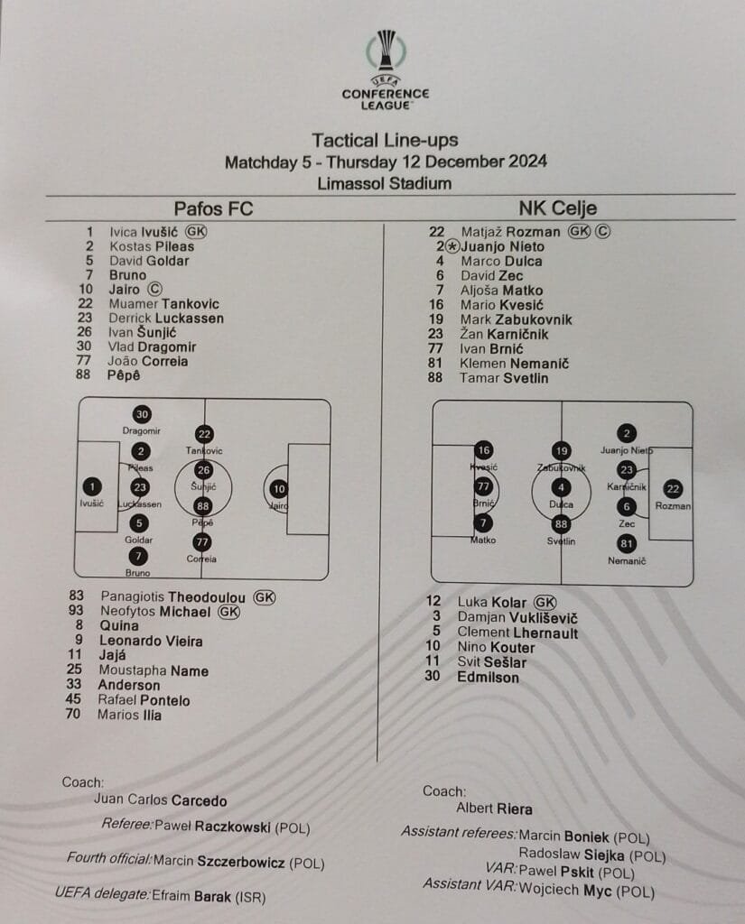 Καλησπέρα από το στάδιο “Αλφαμεγα” όπου σε λίγο θα διεξαχθεί ο αγώνας Πάφος F.C. – Celje για την 5η αγωνιστική της League Phase του Conference League.