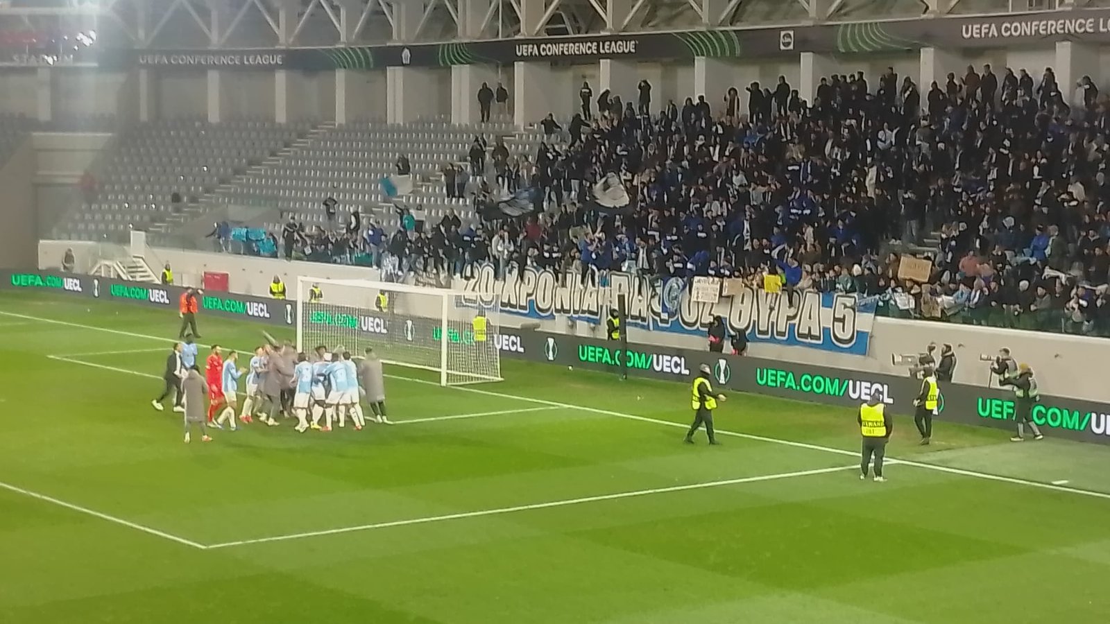 Τέλος αγώνα στο ”Αλφαμέγα” με την  Πάφος F.C. να παίρνει την μεγάλη ιστορική πρόκριση για την φάση των ”16” του Conference League αφου νίκησε την Ομόνοια με 2-1.