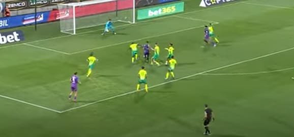 Στο 36’ η ΑΕΚ κατάφερε να ανοίξει το σκορ σε μια περίεργη φάση, όπου ο Αϊτόρ «έκλεψε» τη μπάλα από τον Γιαγκό και σκόραρε με τον Βανά Άλβες εκτός εστίας. Εξέλιξη που έφερε ένταση στο γήπεδο καθώς οι του Άρη ήθελαν να βγάλουν την μπάλα έξω καθώς ήταν στο έδαφος ο Καμπρέρα.