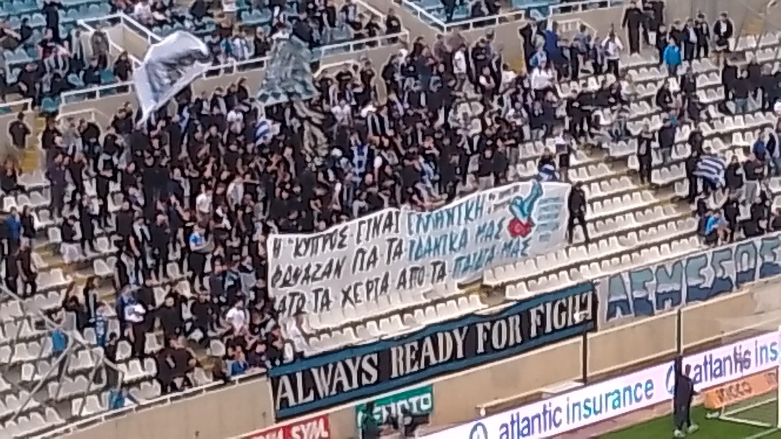 Ένα πανό με μυνήματα για πολλούς αποδέκτες ανέβασαν οι οπαδοί του Απόλλωνα στο Βόρειο πέταλο του ΓΣΠ που σχετίζεται με το σύνθημα που φώναζαν οι Έλληνες ναύτες στην παρέλαση της 25ης Μαρτίου.