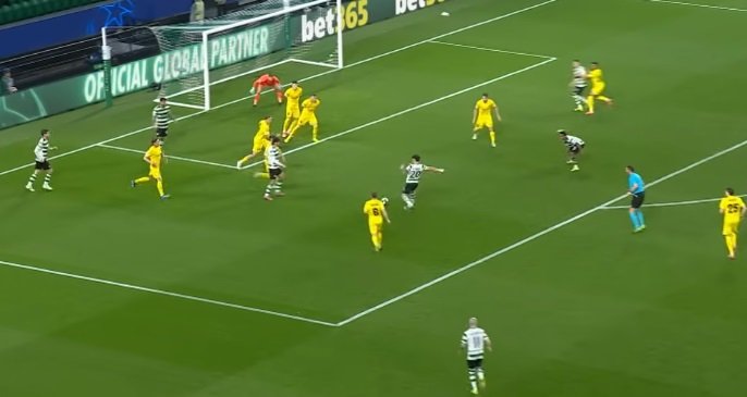 Στο δεύτερο μέρος, η πίεση των Πορτογάλων έγινε ακόμη πιο έντονη. Στο 61’, έπειτα από εξαιρετική κάθετη πάσα του Κατάμο και όμορφη ασίστ του Σουάρεζ, ο Πέδρο Γκονσάλβες πέτυχε το 2-0 από κοντινή απόσταση, δίνοντας νέο ενδιαφέρον στην αναμέτρηση. Η Σπόρτινγκ συνέχισε να επιτίθεται ασταμάτητα και τελικά κέρδισε πέναλτι, όταν η μπάλα βρήκε στο χέρι του Μπιόρκαν μετά από σέντρα του Φρεσνέδα. Μετά από εξέταση της φάσης μέσω VAR, ο διαιτητής υπέδειξε την παράβαση και ο Σουάρεζ ευστόχησε από τα 11 μέτρα, ισοφαρίζοντας το συνολικό σκορ σε 3-3.