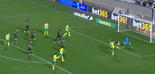 Στη συνέχει δεν υπήρξαν προϋποθέσεις για κάτι καλό, μέχρι που φθάσαμε στο 41' λεπτό όπου σε ένα γυριστο του Semedo εντός περιοχής η μπάλα είχε κατεύθυνση τα δίχτυα, όμως ο Kuhn απογειώθηκε και έδιωξε σε κόρνερ.